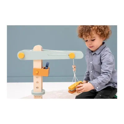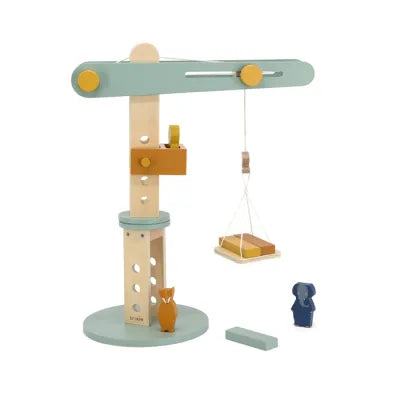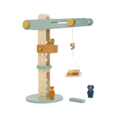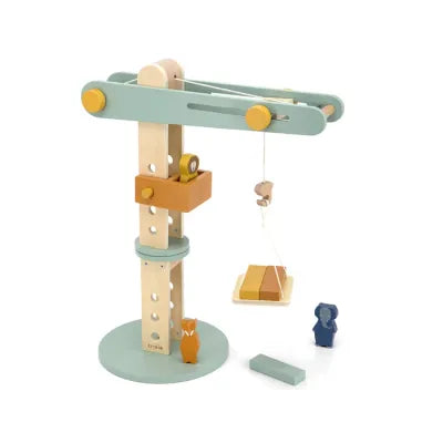 Questa gru di legno vi aiuterà a costruire le cose più pazze. La gru è dotata di tre amici animali, una piattaforma di carico e tre blocchi da costruzione. Il set perfetto per stimolare l'immaginazione del vostro piccolo per ore. Il carico può essere sollevato, spostato in avanti e indietro e capovolto. Questa gru è in grado di stimolare la creatività di ogni bambino!