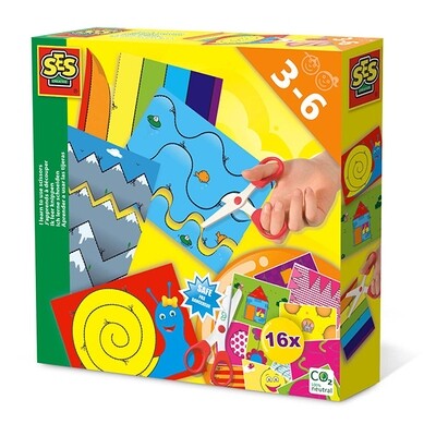 Imparo a tagliare con un paio di forbici per bambini e 16 coloratissimi esercizi di taglio, per bambini dai 3 ai 6 anni.