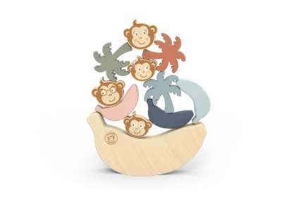 Questo divertente gioco di equilibrio in legno contiene blocchi colorati come banane, palme e scimmie con una banana più grande come base. Si tratta di un gioco di equilibrio per principianti con graziosi e attraenti blocchi di legno che permettono ai bambini più piccoli di ampliare la loro conoscenza dei colori. Oltre all'equilibrio, stimola la pazienza durante il gioco, la concentrazione, le capacità di pensiero, la logica e le capacità motorie fini. Questo giocattolo è realizzato in legno proveniente da foreste certificate FSC gestite in modo sostenibile. Presentato in una splendida confezione regalo.