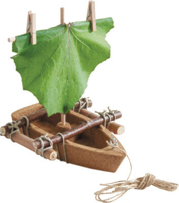 In un batter d'occhio, questa barca è pronta e funzionante su qualsiasi mare e con qualsiasi tempo. È fatto di granuli di sughero agglomerati ed è praticamente inaffondabile. Ideale per le gite del fine settimana sulle rive del fiume o per le vacanze in famiglia al mare. I piccoli costruttori possono anche decorare la barca secondo i loro desideri, con piccoli oggetti trovati in natura per esempio. L'opuscolo allegato dà molti consigli e ottime idee per questo.