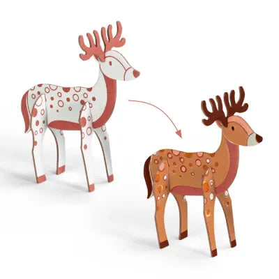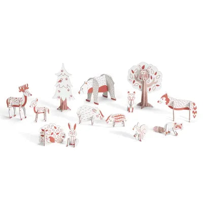 Costruire, disegnare o giocare? Con questo set non dovrete scegliere: potrete colorare, disegnare, costruire e giocare insieme. Questo set creativo comprende tanti pezzi di cartone da colorare e assemblare. Il risultato: 13 animali della foresta, alberi e arbusti.