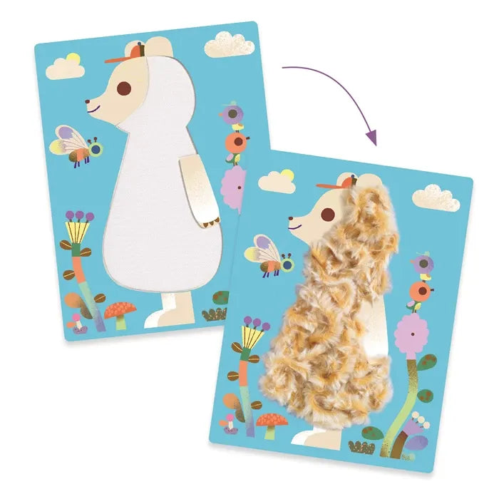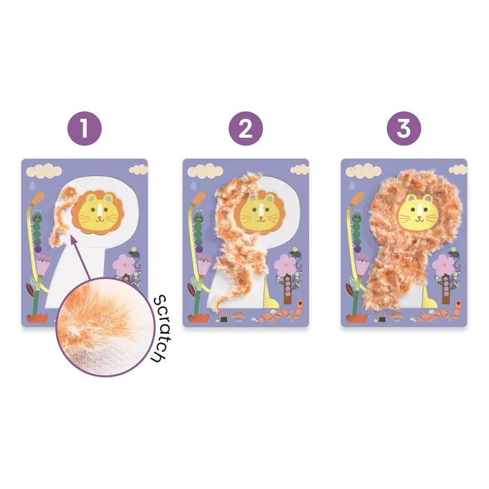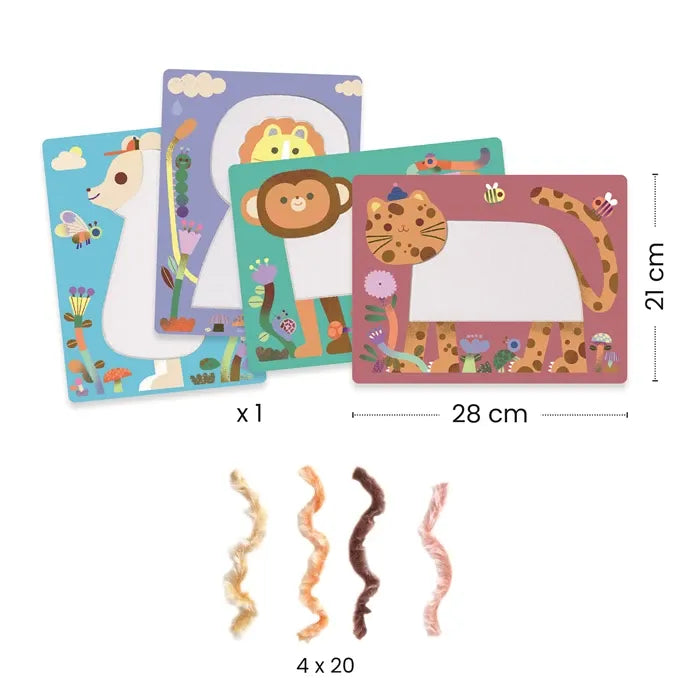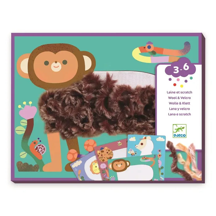 Un'attività creativa veloce e divertente, morbida come un peluche! I bambini creano adorabili animali utilizzando fili di lana morbida da posizionare su chiusure a strappo in velcro. Il set comprende 4 fogli con chiusura a strappo e 4 colori di lana soffice. I fili di lana hanno una consistenza piacevole al tatto e stimolano i sensi dei bambini lasciando ampio spazio alla creatività. Ogni animale creato diventa una piccola opera d'arte tattile, piacevole da guardare e da toccare.