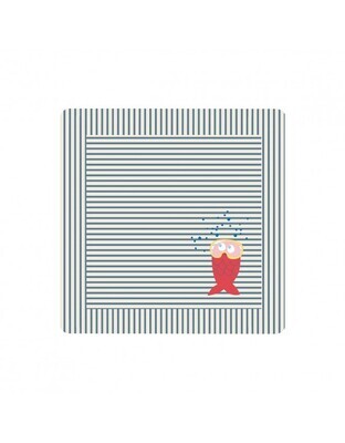 Mantello da bagno in 100% cotone bio certificato GOTS con sottili strisce color crema e blu.