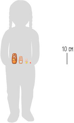 Aprendo la figura di papà orso si troverà una dolce sorpresa: ecco che spunta mamma orso, e aprendola a sua volta, anche i loro cuccioli di orso. La dolce famigliola può essere anche disposta tutta in fila. Le piccole matriosche rappresentano un gioco classico e vario che non passerà mai di moda!