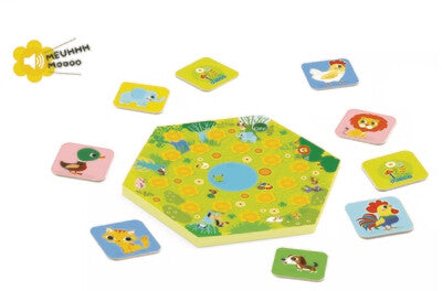 Un divertente memo in cui bisogna premere un puntino giallo, ascoltare attentamente e riconoscere il verso di un animale, quindi trovarlo tra le carte. Un classico rivisitato per dimostrare le capacità di memoria e di ascolto.