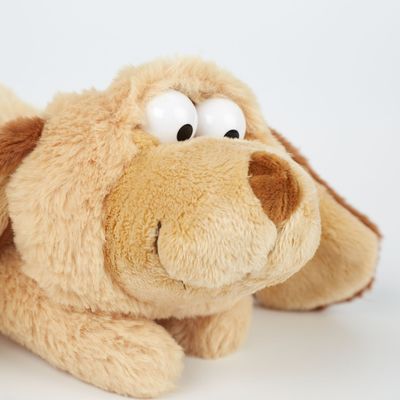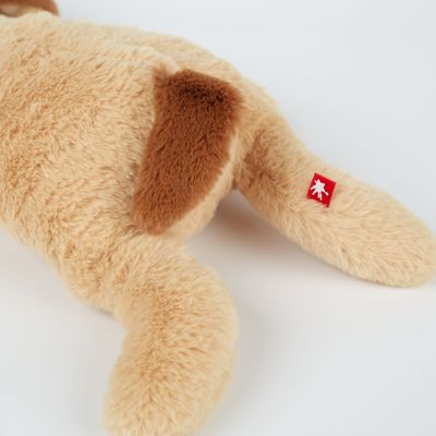 Il cane oggi ha uno sguardo particolarmente intenso o sembra triste perché nessuno ha ancora giocato con lui? Dipende dalla posizione delle sue palpebre: esse contengono un rinforzo flessibile che può essere utilizzato per modellarle a piacimento. È incredibile come una piccola ruga possa cambiare l'espressione del suo viso! Una grande idea di gioco per i più piccoli, perché finalmente il loro peluche preferito può anche mostrare i suoi sentimenti.