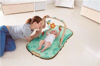 Fai divertire il tuo bambino su questo morbido tappetino ovunque tu sia. In questa palestrina portatile ci sono una mela, un`ape con le ali fruscianti e un fiore che danno gioia agli occhi e alle manine. Una volta richiuso, diventa un elegante borsone.