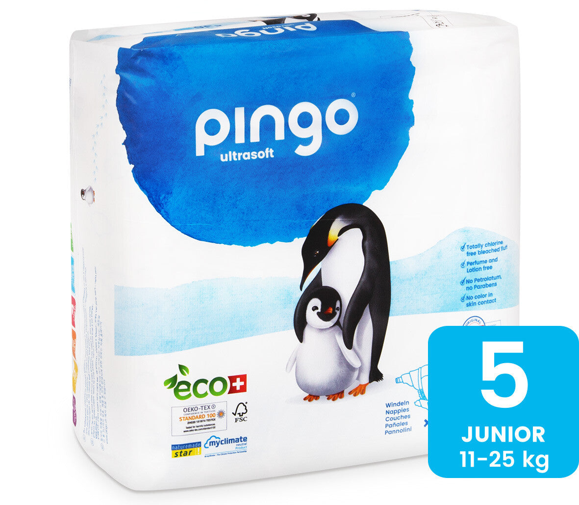 I pannolini Pingo sono prodotti in Svizzera da oltre di trent’anni e utilizzati con successo in case maternità, negli asili nido e da privati. La certificazione FSC® dei pannolini Pingo garantisce che la cellulosa utilizzata provenga da una gestione forestale sostenibile e salvaguardi le nostre risorse. I pannolini Pingo sono prodotti con elettricità verde certificata. L‘impronta di CO2 rimanente è completamente compensata attraverso i progetti myclimate.Questi pannolini ecologici dispongono di un nuovo e più sottile nucleo altamente assorbente, che assorbe rapidamente il bagnato isolandolo fino a 12 ore, e garantendo così 24 ore di massima asciuttezza.La nuova chiusura comfort e super elasticizzata offre una forma anatomica ottimale, un miglioresostegno anche nel richiudere e libertà di movimento. La sgambatura elastica e l‘ampia barriera deflusso permettono una tenuta molto sicura. I materiali utilizzati sono estremamente morbidi e soffici, traspiranti e dermoprotettivi e fanno sentire bene il bimbo al contatto della pelle.