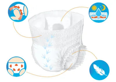 - le ampie barriere anti-perdita e i polsini elasticizzati delle gambe garantiscono una protezione sicura contro le perdite