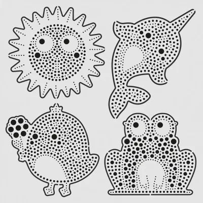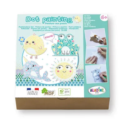 Il set per dipingere i puntini Kawaii di Aladine stimola la creatività, la precisione e la concentrazione dei bambini. Richiede inoltre abilità e perseveranza per completare i puntini con l'apposito strumento di pittura. Le forme degli animali e l'ampia gamma di colori faranno battere il cuore a tutti i bambini dai 6 anni in su. Contenuto: 1 pennello, 1 matita, 2 strumenti di pittura, 8 colori a base d'acqua, 1 stencil, 4 forme di legno.