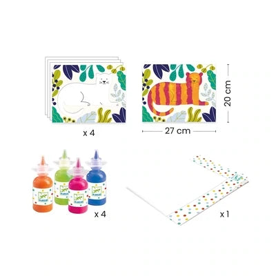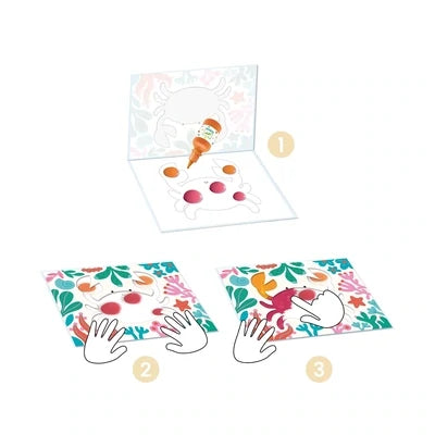 Aprire la busta, versare la pittura e chiuderla. Il bambino può quindi stendere la pittura senza sporcarsi. È magico! Un po' d'acqua e può ricominciare.