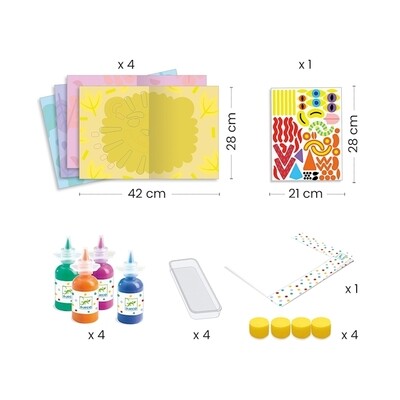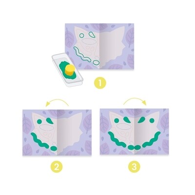 Il bambino dispone la pittura da un lato e poi piega il foglio. Lo accarezza e... sorpresa! Subito dopo, lo decora con degli sticker.