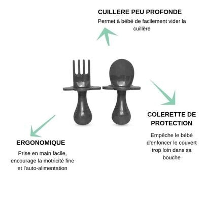 L'impugnatura ergonomica si inserisce comodamente nella naturale presa delle mani dei bambini, rendendo facile il movimento della mano verso la bocca! L'uso di questo set rafforzerà anche le loro dita, promuovendo al tempo stesso lo sviluppo di una buona presa della matita (questo sarà utile in seguito!).