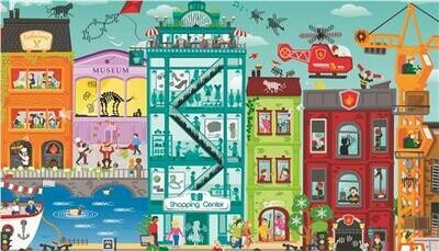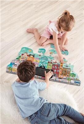 Grande puzzle della città di 49 pezzi con un visore di carte magiche, che crea effetti di animazione quando viene spostata sull'immagine.