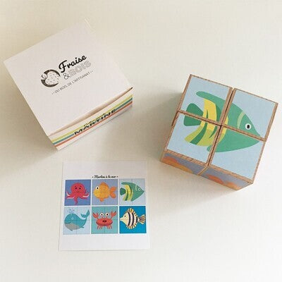 Con il puzzle 3D in legno Martine, il tuo bambino manipola i cubi per ricreare una delle sei illustrazioni possibili, è lui che sceglie! Oltre a sviluppare la loro motricità fine girandoli, svilupperanno il loro senso di osservazione e logica ordinando le facce per ricostituire le diverse immagini colorate e attraenti.