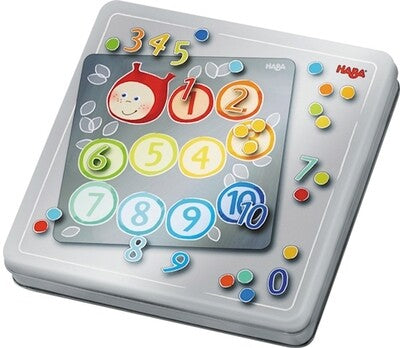 Questa scatola magnetica per il gioco con i numeri è molto colorata. È un modo divertente per i bambini di imparare a contare e a riconoscere i numeri. La pratica scatola di metallo serve da tavolo da gioco e da contenitore. Si può portare con sé ovunque si vada.