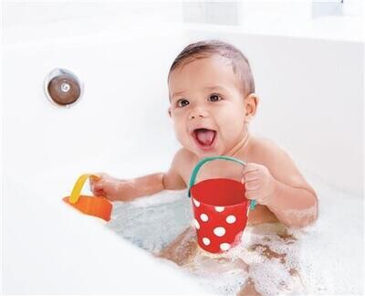 Tre secchielli variopinti che fanno scorrere l`acqua in modo divertente. Perfetti per l`ora del bagnetto