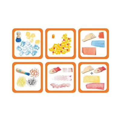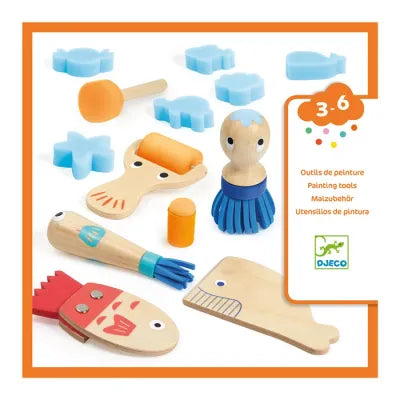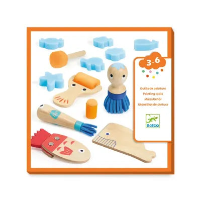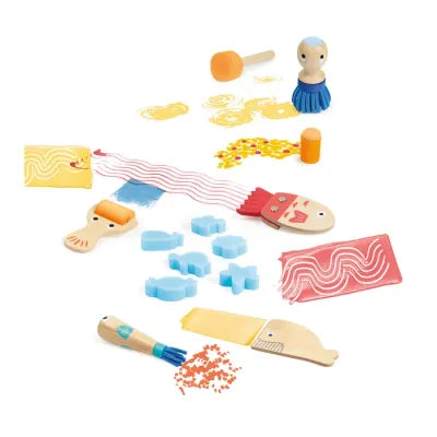 Questo set comprende 6 strumenti in legno robusti ed ergonomici, 6 spugne di forme diverse e 10 schede di istruzioni illustrate. Questi elementi permettono ai bambini di dare libero sfogo alla loro immaginazione e di esplorare diverse tecniche di pittura.