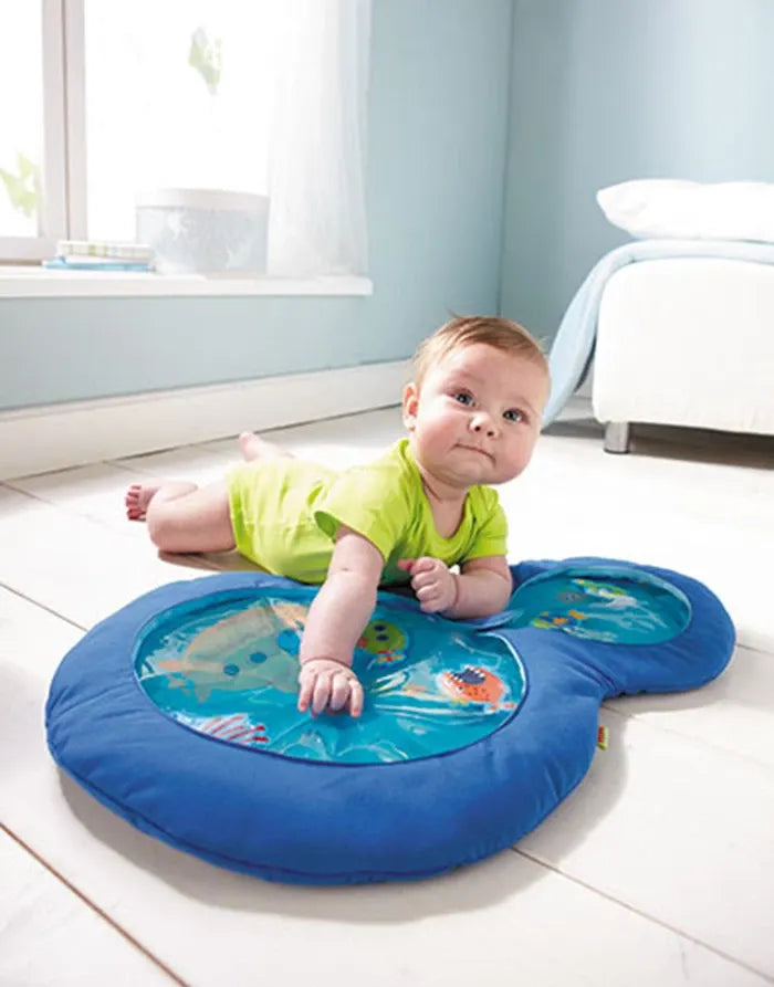 Questo tappeto da gioco acquatico è un mondo unico in cui i bambini possono scoprire tutti i tipi di cose che nuotano. I piccoli tuffatori e i loro amici possono essere spostati facilmente con un semplice gesto della mano. È un modo divertente per i bambini di sviluppare le loro capacità motorie mentre sono sdraiati sul pancino. Il tappetino pieno d'acqua è ricoperto da un morbido rivestimento in tessuto su cui i bambini possono sdraiarsi comodamente. Con valvola di sicurezza.