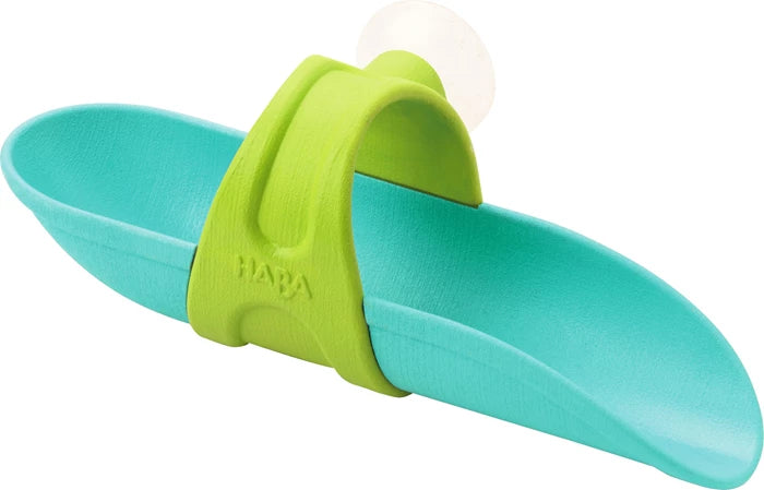 Con lo scivolo a sfera HABA Bathtime Ball, sguazzare nella vasca diventa ancora più divertente. Una volta fissati gli scivoli e la ruota a pale alle piastrelle del bagno con le loro ventose, via: la sfera vola da uno scivolo all'altro, fa girare la ruota a pale e finisce nell'acqua della vasca, scatenando una risata fragorosa.