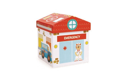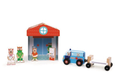 Il set contiene varie statuette di legno e una confezione che può essere trasformata in un backstage per il gioco.