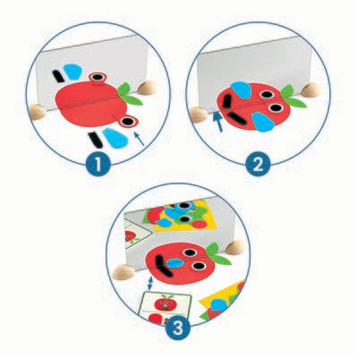 Metti le forme sotto lo specchio e girale finché non trovi una delle facce sulle carte.