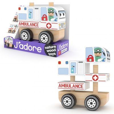Jouet en bois naturel. Il suffit d'assembler les cubes colorés dans le bon ordre pour faire apparaître le véhicule. La base à roulettes est équipée de deux bâtons sur lesquels les cubes sont maintenus. Ce jouet aux couleurs gaies aide les enfants à développer leur motricité fine, leur dextérité et leur coordination œil-main pour la préhension.