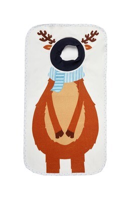 Le bavoir a été estampillé en forme de renne, ce qui permet aux enfants de jouer à se déguiser, dès qu'ils l'enfilent, comme s'il s'agissait d'une chemise. "Maintenant, je deviens un renne !" Ce qui fait du moment de mettre le bavoir, une activité ludique mais aussi autonome.