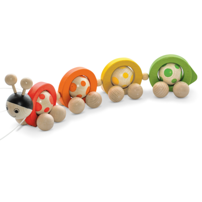 La drôle de chenille roule joyeusement derrière les petits. Cet animal robuste à tirer est amusant à manipuler et les boules à pois tournent sur elles-mêmes pour créer un effet spécial.