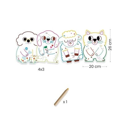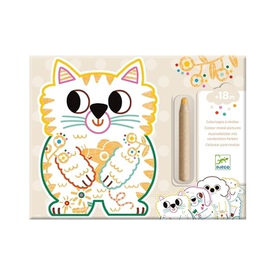 Avec un gros crayon, l'enfant peut colorier partout, mais cela ne marque que à certains endroits. Magique !