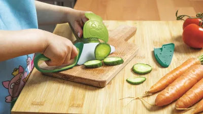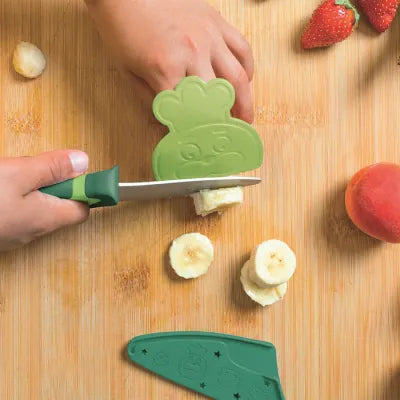 Apprenez à votre enfant à couper les aliments sans avoir peur de l'accident! Ce couteau est divisé en 3 parties, la partie extérieure du manche est en plastique solide, l'intérieur est en grip soft touch antidérapant pour une meilleure prise en main et enfin la lame est en acier inoxydable pour une bonne qualité de découpe et une utilisation durable.
