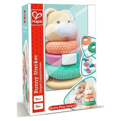 Cet adorable lapin aux longues oreilles empilable fera certainement naître un sourire sur le visage de chaque enfant. Le jouet se compose de cinq parties - un socle en bois de hêtre, trois anneaux empilables de différents matériaux et une pointe qui représente une finition duveteuse en forme de tête de lapin aux longues oreilles. L'un des anneaux d'empilage a une jolie queue en pompon que l'on peut tirer en arrière et qui fait un bruit de clic lorsqu'on la relâche.