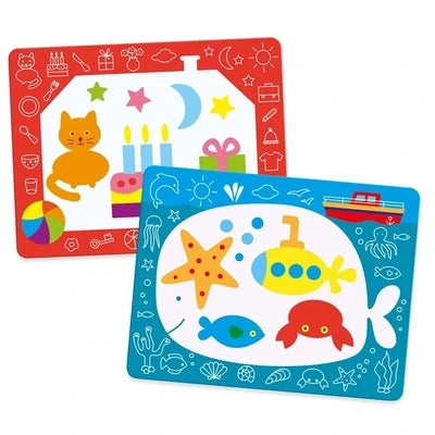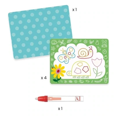 Une fois le marqueur rempli d'eau, l'enfant colorie pour faire apparaître les surprises. Lorsque le dessin est sec, il peut recommencer à colorier encore et encore !