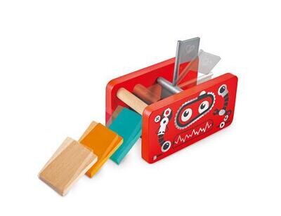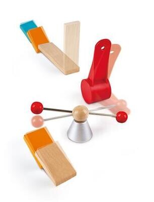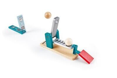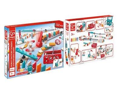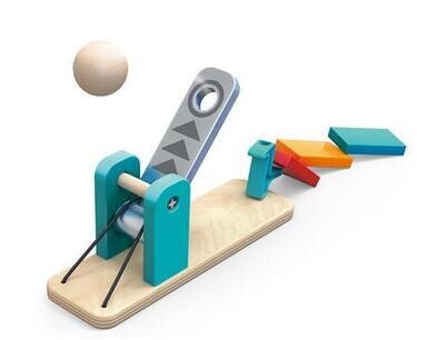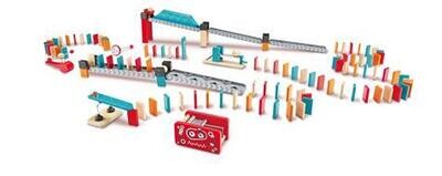 Catapultez une bille en bois avec ce circuit de dominos sur le thème des robots ! Un chariot à bascule, une piste, un bras à bascule et plusieurs rampes forment un parcours fascinant à reconstruire encore et encore.