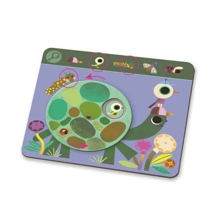 Le coffret comprend 6 planches avec roues animées. L'enfant s'amuse à tourner, à manipuler et à explorer les planches pour retrouver les éléments cachés. Comme un véritable coucou-caché, les illustrations prennent vie sous les doigts de vos enfants. Chaque partie devient un véritable moment de découverte et de manipulation.
