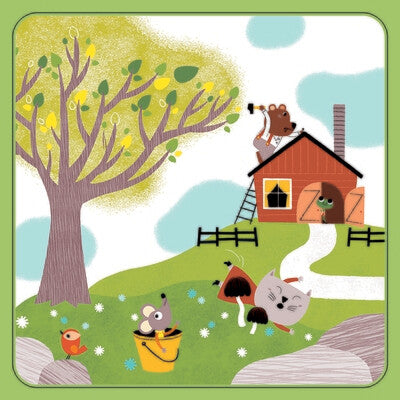 Trouve la position des 5 animaux par rapport aux 5 éléments du paysage. Un jeu simple et amusant pour apprendre à s'orienter dans l'espace.