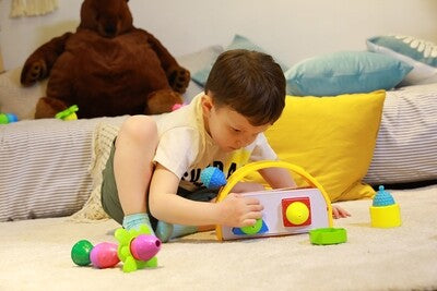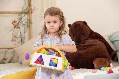 Jeu multifonctionnel pour trier, empiler et équilibrer qui peut être converti en base pour jouer avec les perles de découverte colorées.