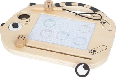 Les petits artistes découvrent amusement et créativité en dessinant ! Cet adorable tableau à dessin en forme de chat est parfait pour les enfants qui aiment peindre et dessiner. Le crayon, solidement fixé à un ruban, permet de créer sans cesse de nouveaux dessins. Deux tampons avec des motifs d'œil de chat et de tête de chat, offrent des possibilités supplémentaires pour créer des œuvres d'art uniques. Particulièrement pratique : le crayon s’attache en toute sécurité sous la patte du chat lorsqu'il n'est pas utilisé et ne se perd pas grâce à la fixation. Lorsque le chef-d'œuvre est terminé ou que l'on veut faire de la place pour de nouvelles idées, il suffit d’effacer le tableau à l'aide de la languette coulissante – tout est ainsi prêt pour la prochaine œuvre d'art ! Tableau avec un dégradé de couleurs.