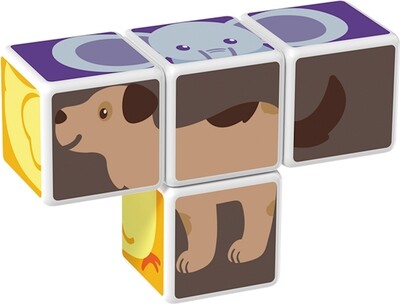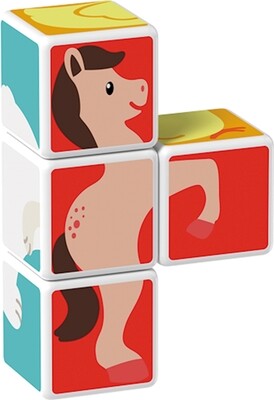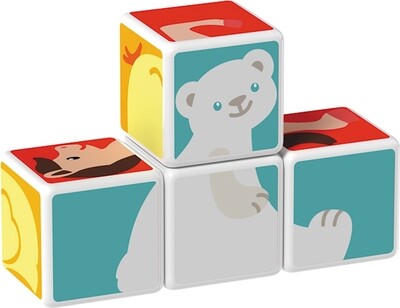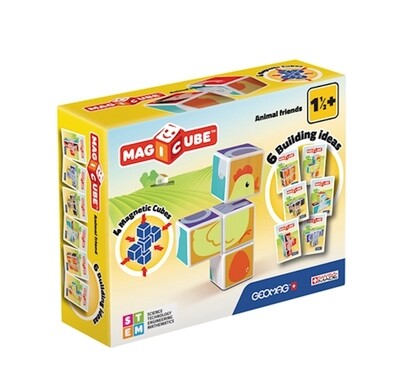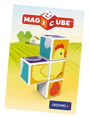 Le système de construction magnétique avec les cubes magiques. 4 cubes magnétiques et 3 cartes avec 6 motifs différents pour découvrir le monde captivant du magnétisme.