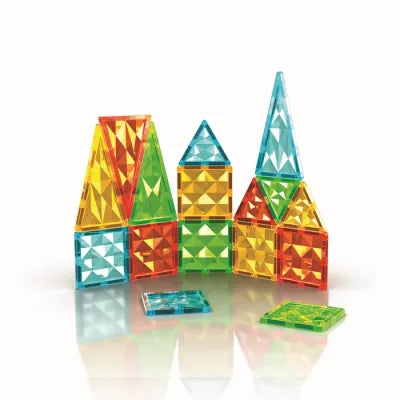 Le set comprend 16 plaquettes de construction colorées. Les aimants intégrés dans les bords permettent une construction stable et maintiennent vos créations en place, aussi bien en 2D qu'en 3D. Avec les Magnetic Tiles Gems, apprendre devient un véritable plaisir ! La construction de vos propres créations favorise la compréhension des concepts géométriques, développe l'intelligence émotionnelle et améliore la motricité fine
