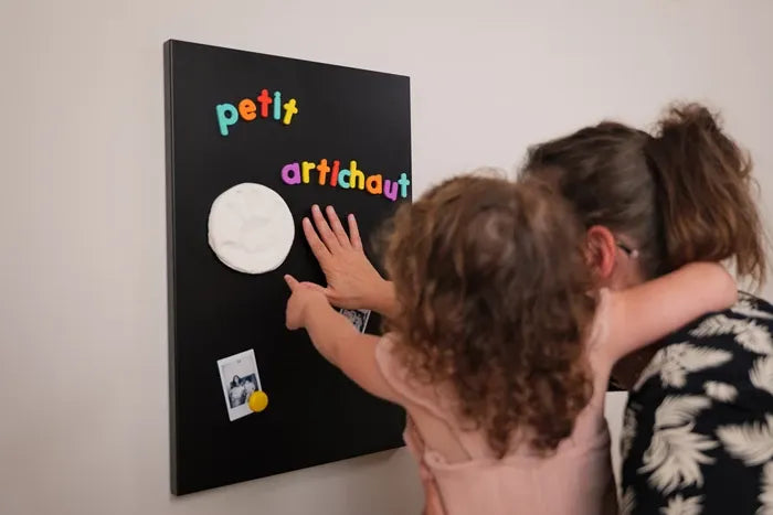 Décorez toute surface aimantée avec l'empreinte miniature de bébé grâce au 2 Magnets Empreinte ! Des jolis petits objets de décoration personnalisés et empreints de tendresse.
