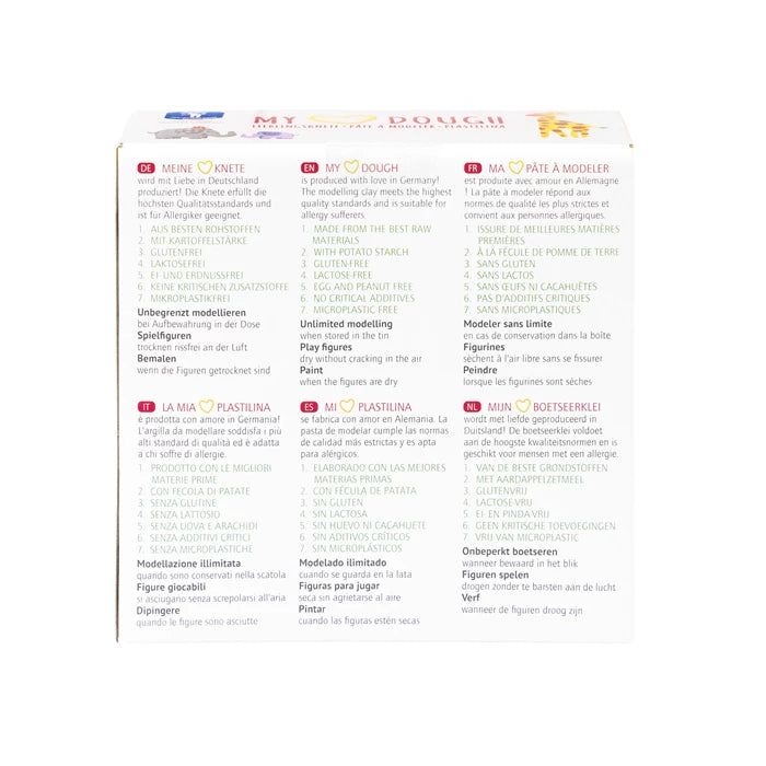 La pâte à modeler est sans gluten, sans lactose, sans protéines, sans arachides et convient aux personnes allergiques.