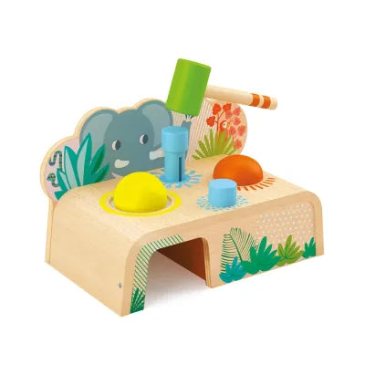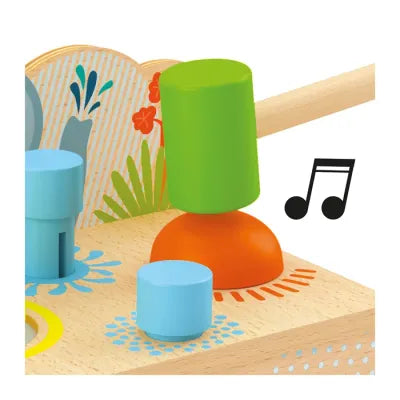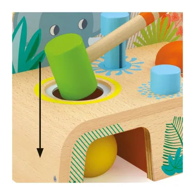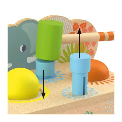 Jeu de motricité qui permet à l'enfant de découvrir 3 manières différentes de taper avec un marteau.
