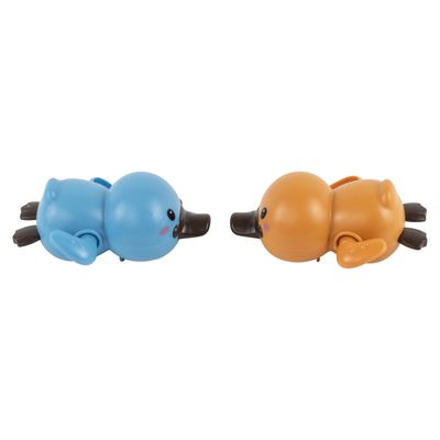 Deux adorables ornithorynques prêts à nager dans un seul ensemble et sans piles. Il suffit de les remonter, de les lâcher dans le bain et de regarder les petits bras de l'ornithorynque tourner pendant qu'ils courent dans l'eau.