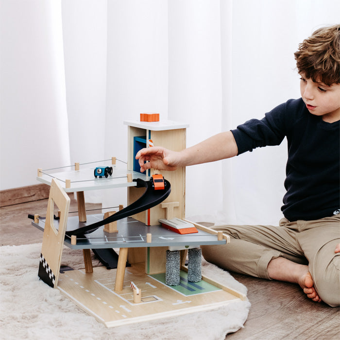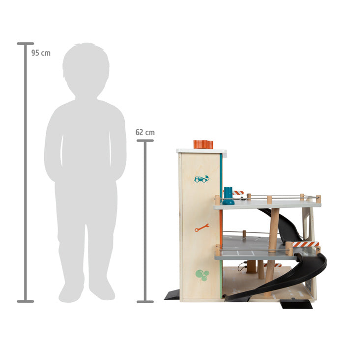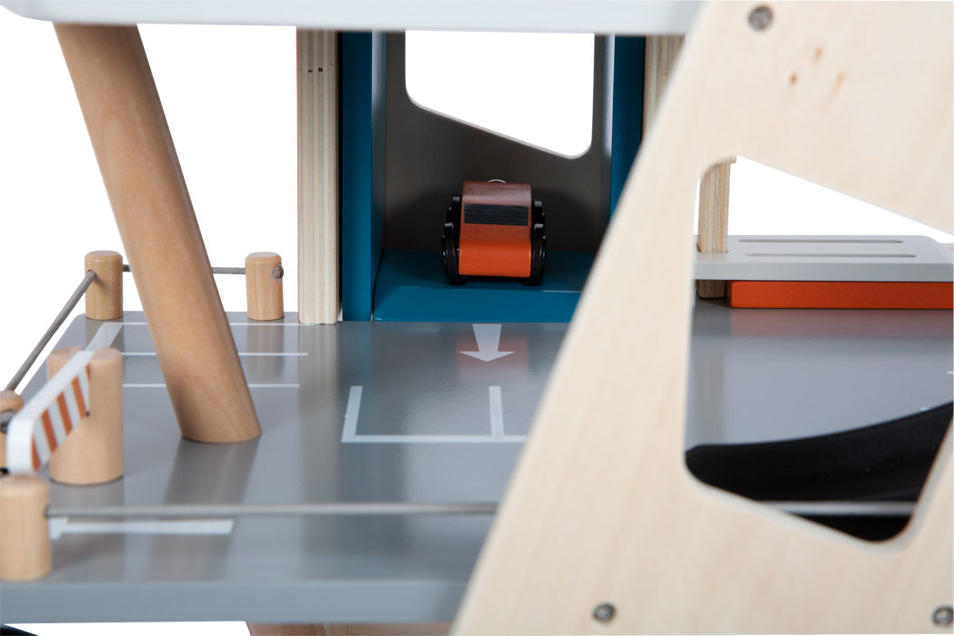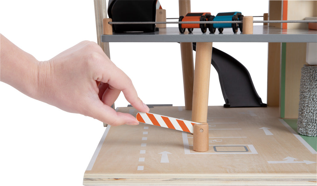 Un must absolu pour les petits amateurs de voitures, de parkings et de garages et un enrichissement pour le parc de véhicules dans la chambre d'enfant ! Les deux rampes stables en plastique sont positionnées de manière à permettre une descente continue de haut en bas. La circulation peut être contrôlée à l'aide des barrières rabattables. Une grande valeur ludique et un plaisir de jeu durable sont ainsi garantis. Comme il n'y a pas de chiffres ni d'écritures, les icônes et les graphiques peuvent être compris par les plus petits. L'architecture unique en son genre permet de jouer en toute liberté et offre une grande stabilité.