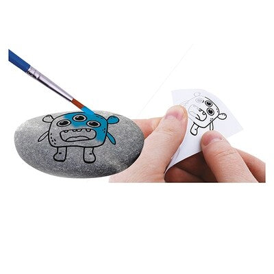 Peindre des pierres avec 3 pierres, 6 couleurs et un pinceau.