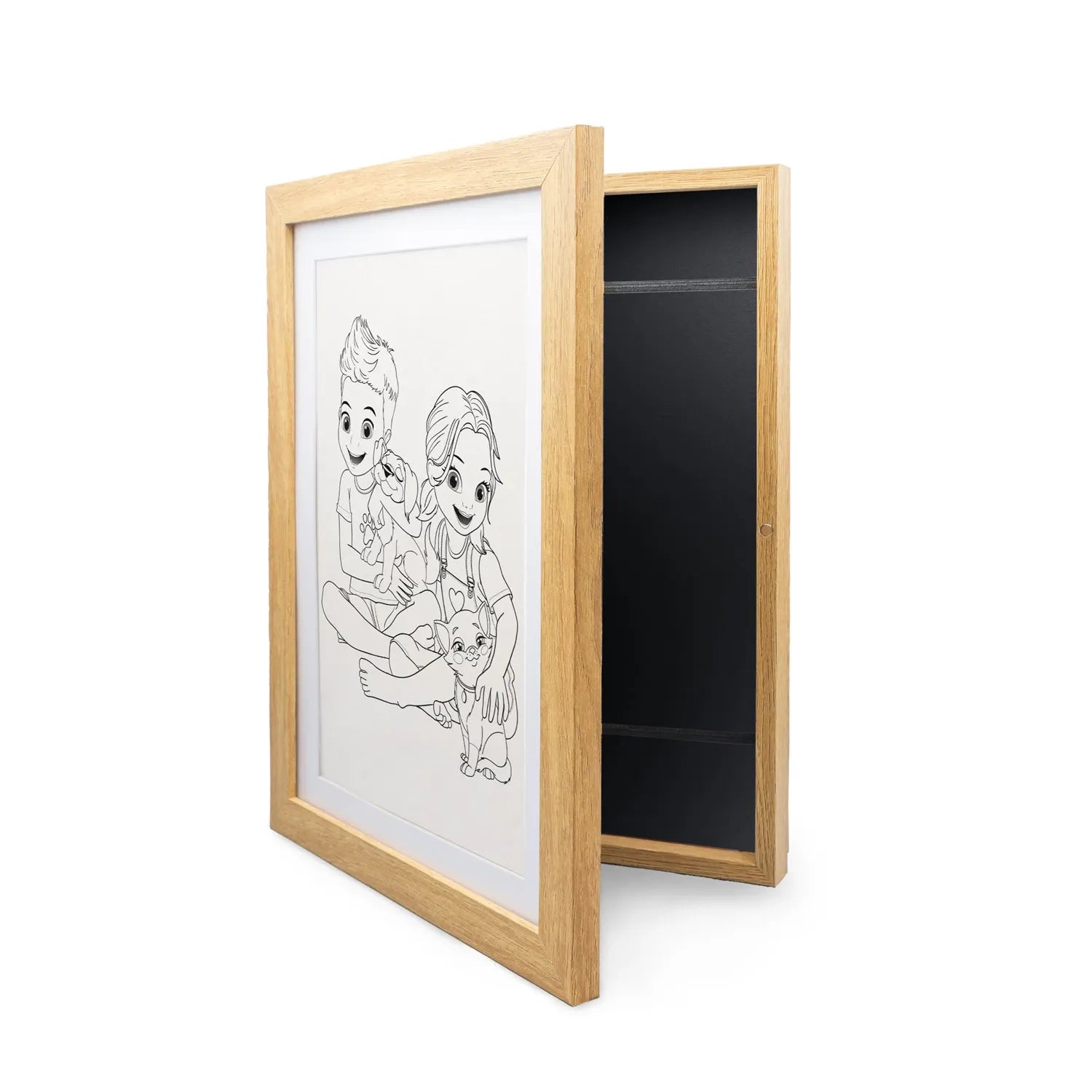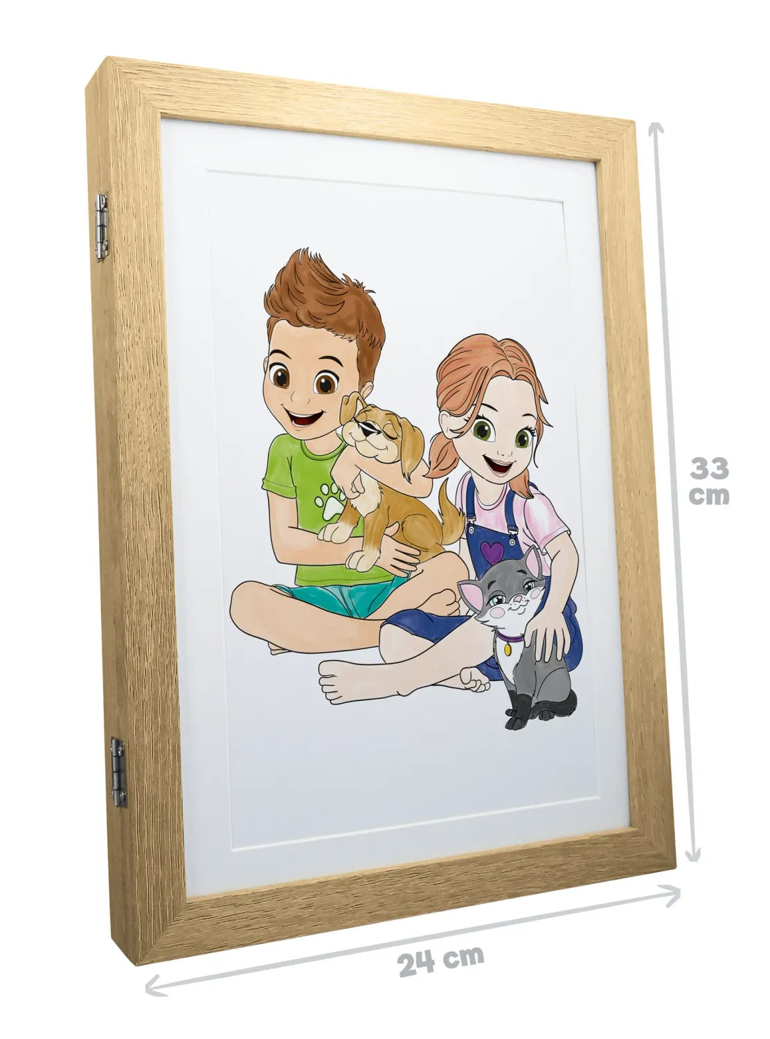 Le cadre mesure 24 x 33 cm et peut être utilisé pour afficher et ranger des dessins A4.