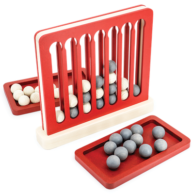 Quatre gagne est un classique pour toute la famille et est fabriqué avec amour en bois suisse. Il est facile à transporter et existe en deux variantes de couleur. Grâce à sa taille, 4 gagne est également parfait pour les déplacements. Un jeu intuitif, amusant et divertissant qui ravira tout le monde.