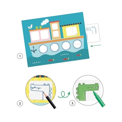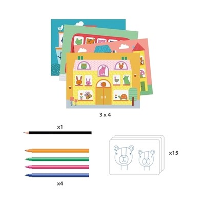 30 personnages très simples à décalquer au crayon, 4 feutres pour les colorier et 4 scénarios (x3) pour les mettre en scène. Et le décalquage devient un art !