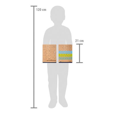 Apprendre à écrire de manière ludique ! Ce kit d'ardoises pour apprendre à écrire stable et de haute qualité en bois certifié FSC® 100% ouvre aux enfants en maternelle et en primaire les portes vers le monde fascinant de l'écriture et de l'apprentissage. Le kit de d’ardoises comprend deux tableaux en bois pratiques avec deux côtés, chacun offrant la base pour une expérience d'apprentissage variée et interactive. Deux crayons en bois de la taille d'un crayon sont fournis pour une sensation d'écriture authentique dans les petites mains d’enfant. Avec ce kit d'apprentissage, les enfants peuvent non seulement apprendre toutes les majuscules et minuscules de l'alphabet, mais aussi reproduire les chiffres de 0 à 9 dans l'ordre correct des traits. Il comprend également une multitude d'exercices d'élan qui entraînent et développent la motricité fine de la main qui écrit avec des arrondis, des arabesques et des lignes droites. Pratique et bien pensé : le kit d'ardoises d'apprentissage de l'écriture dispose d'un rangement intégré pour que les crayons soient toujours à portée de main et que rien ne se perde.